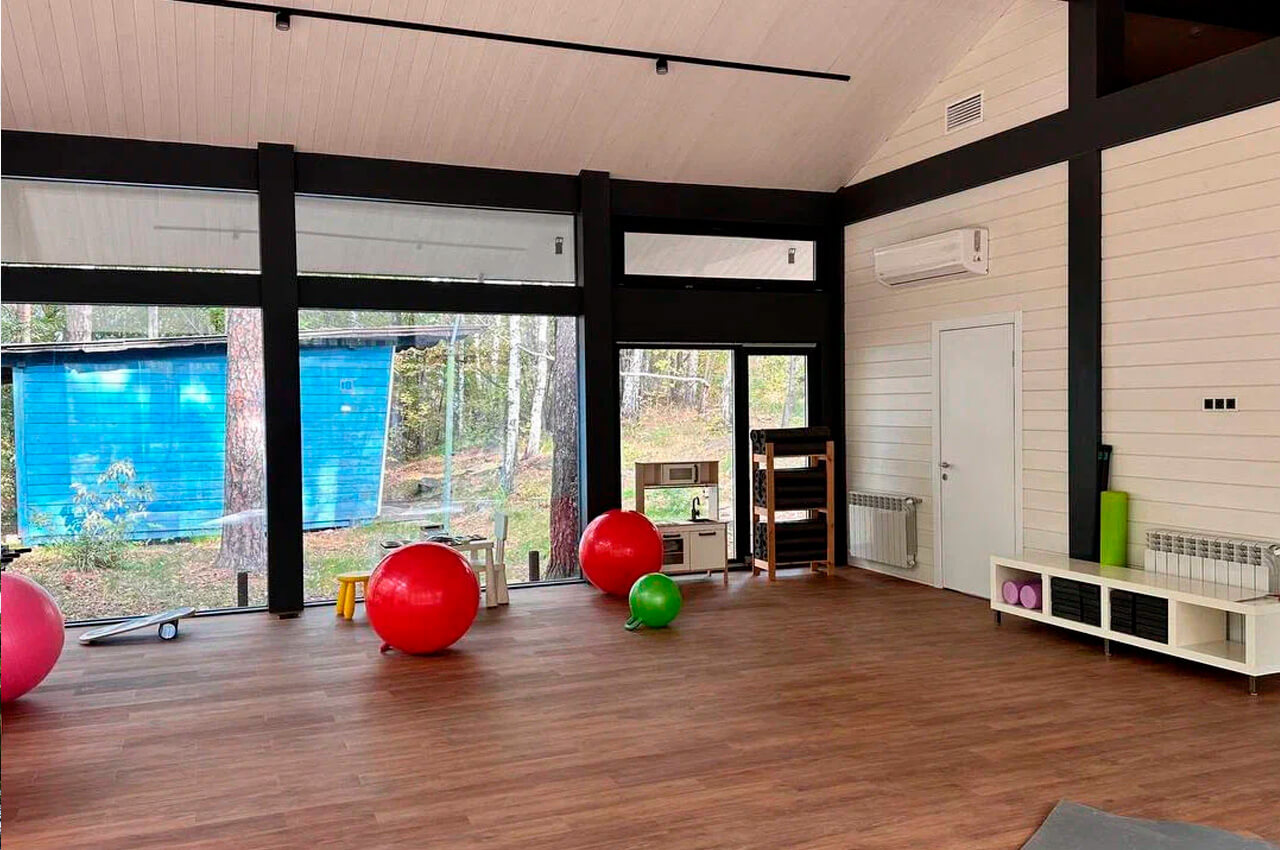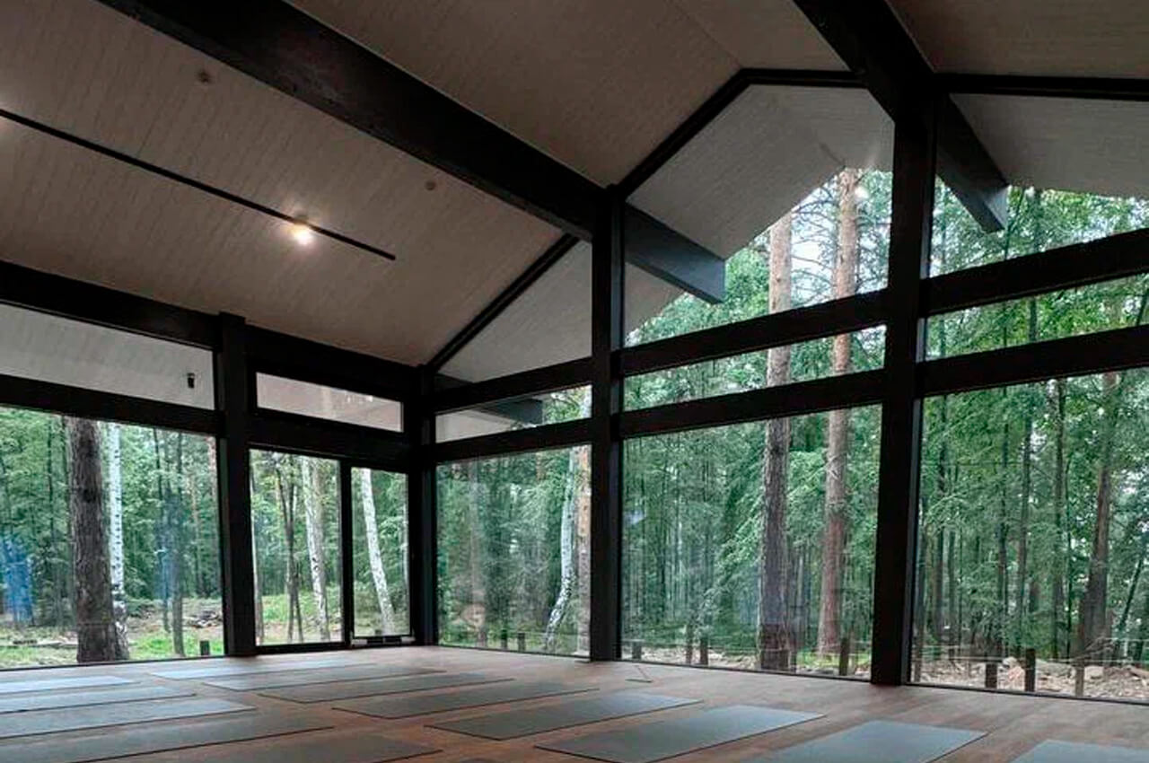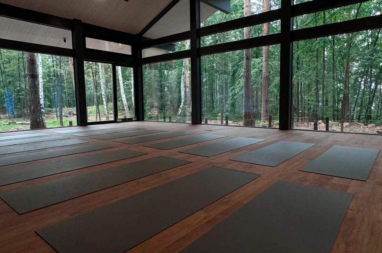 Просторный и светлый зал с панорамным видом на лес — идеальная атмосфера для практики и релаксации. Йога-центр расположен в окружении леса вдали от корпусов и домиков базы отдыха Янтарь. Зал оборудован всем необходимым для занятий: коврики, блоки, ремни, аудиооборудование. В зале есть тренерская комната, небольшая раздевалка и санузел.