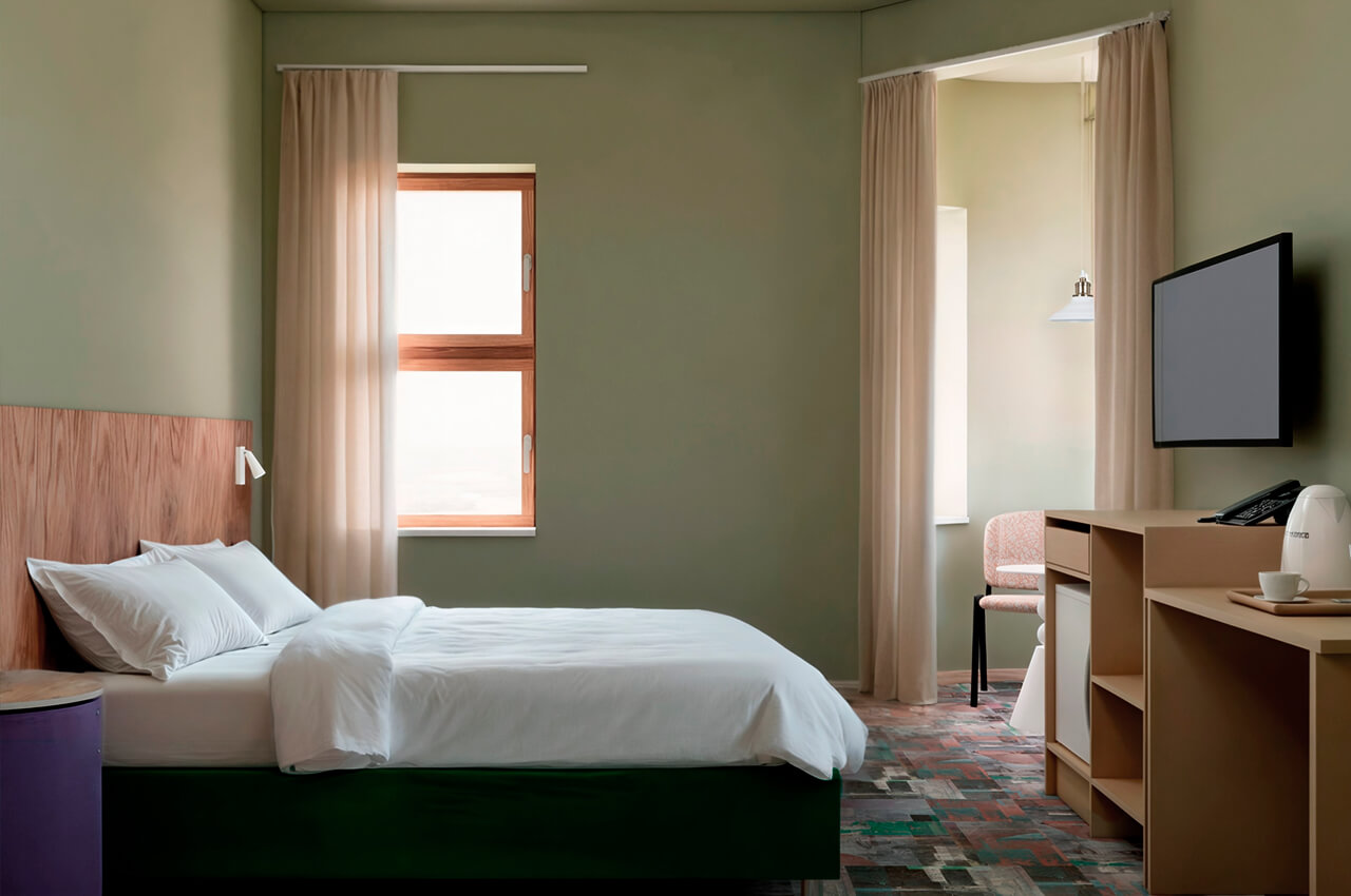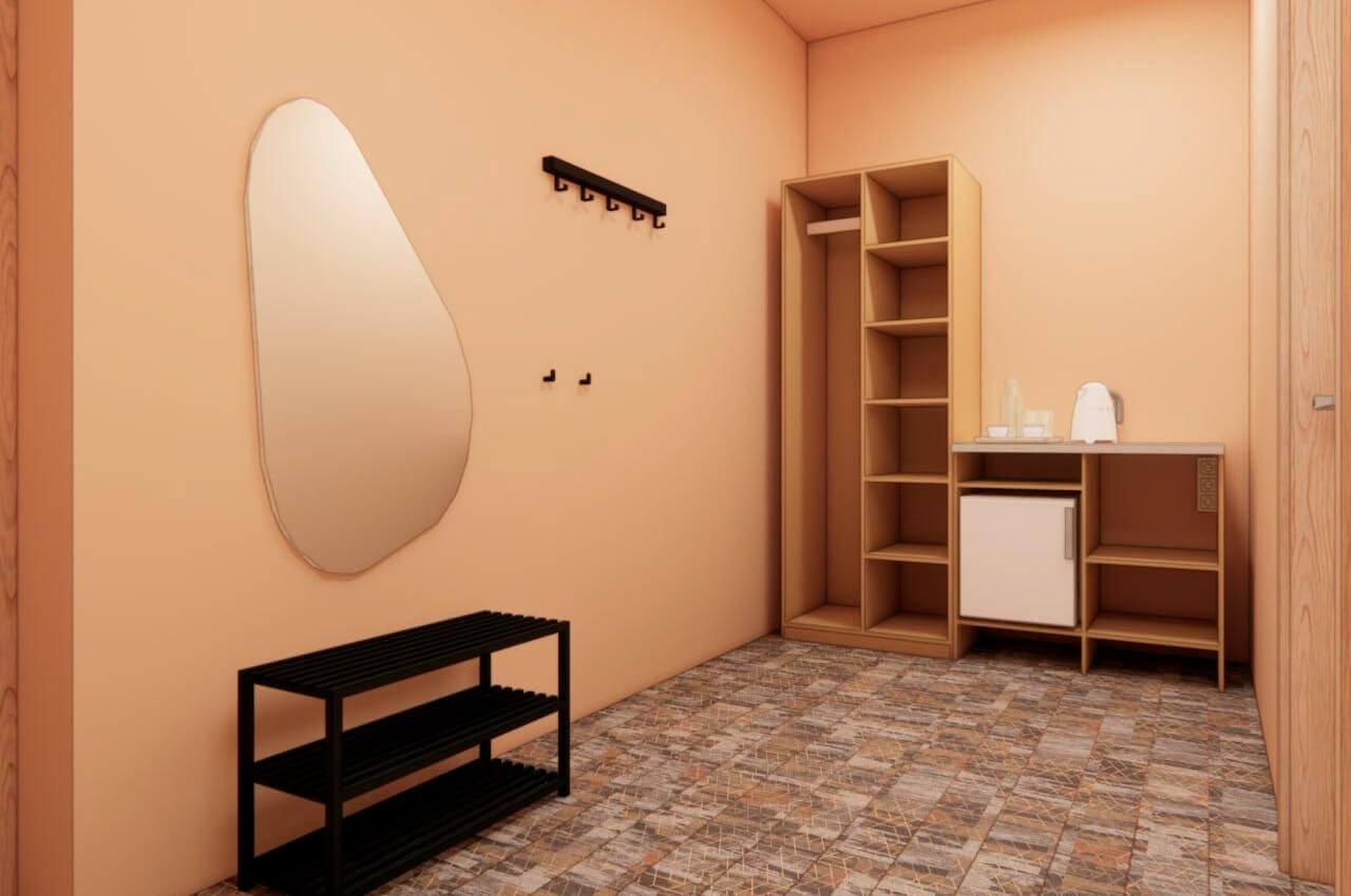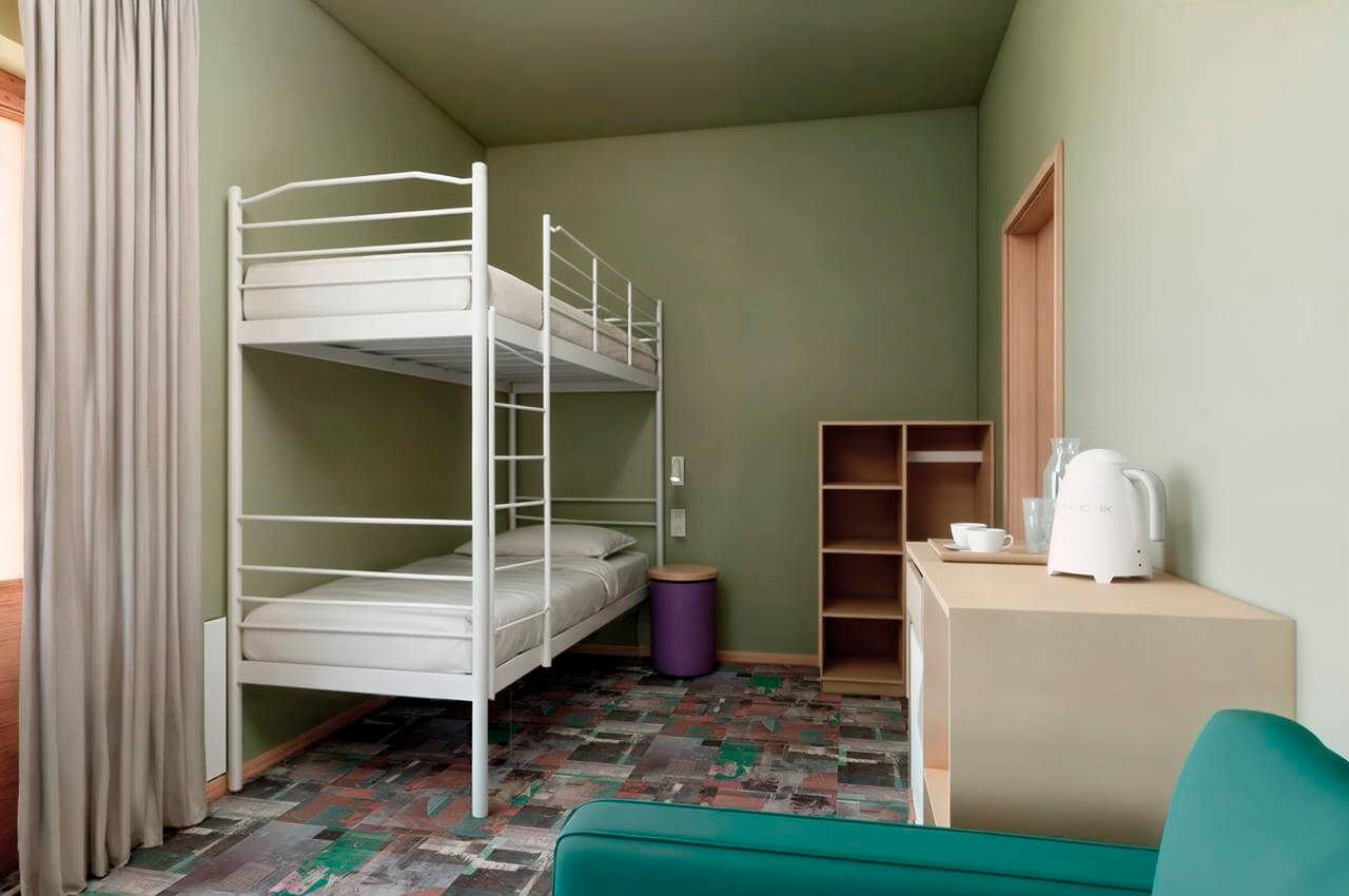 Совершенно новый дизайнерский однокомнатный номер в нашем главном корпусе, прошедшем полную реконструкцию. Прекрасно подойдет для семьи с детьми. В номере: роскошная двуспальная кровать, двухъярусная кровать, зона отдыха с телевизором, интернет, холодильник и чайные принадлежности. Просторные санузлы с выделенной душевой зоной, полотенца, тапочки, профессиональная косметика - все для вашего лучшего отдыха!